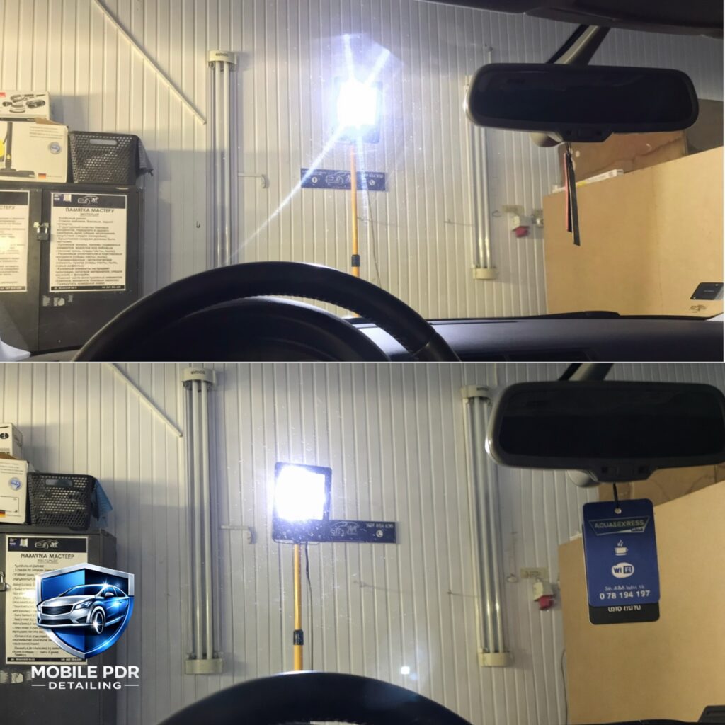 A minimum clear area of approximately 2–2.5 metres around the vehicle is required to allow correct positioning of tools, lighting and safe access during Paintless Dent Removal.